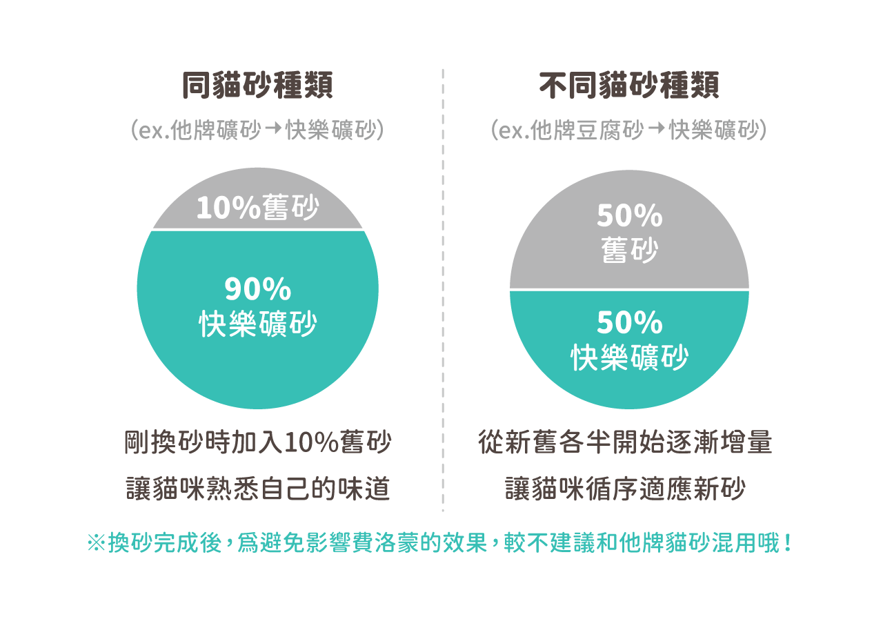 1. 要如何混砂呢?可以和他牌貓砂混用嗎?