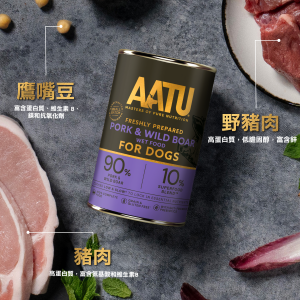 AATU 天然主食狗罐頭 豬肉&野豬配方 400g