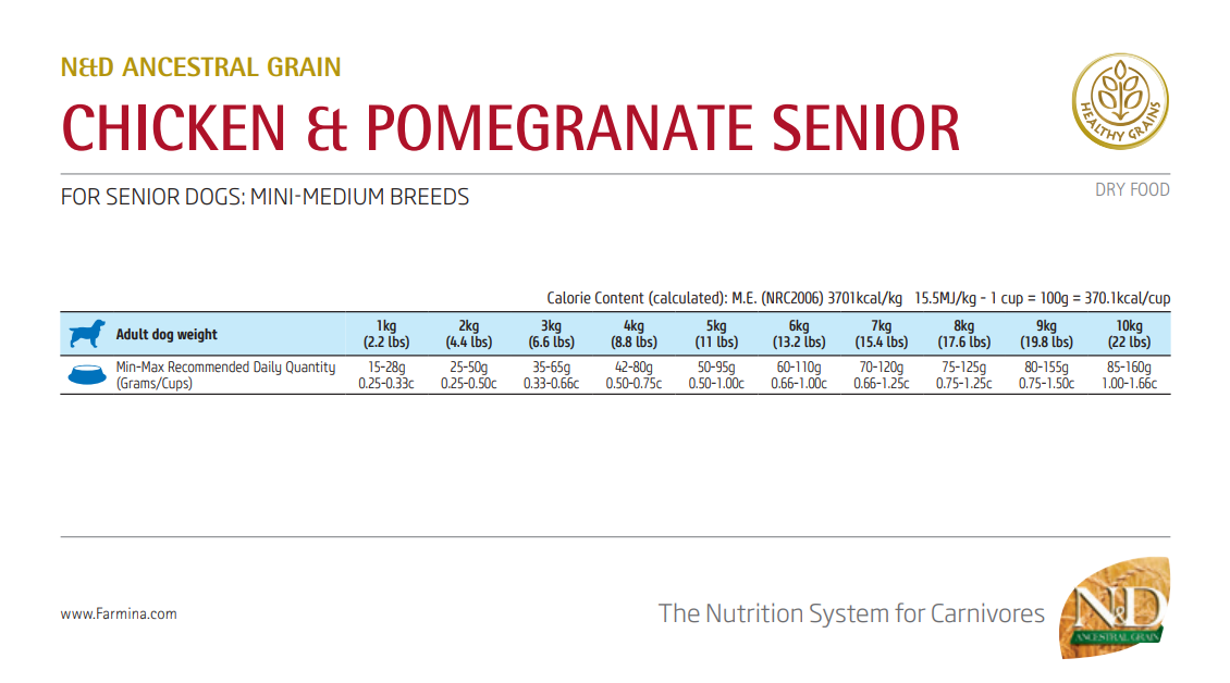 Farmina N&D Ancestral Grain Chicken and Pomegranate Senior mini – 天然低穀系列 雞肉+石榴 (高齡犬) (小顆粒) 2.5kg