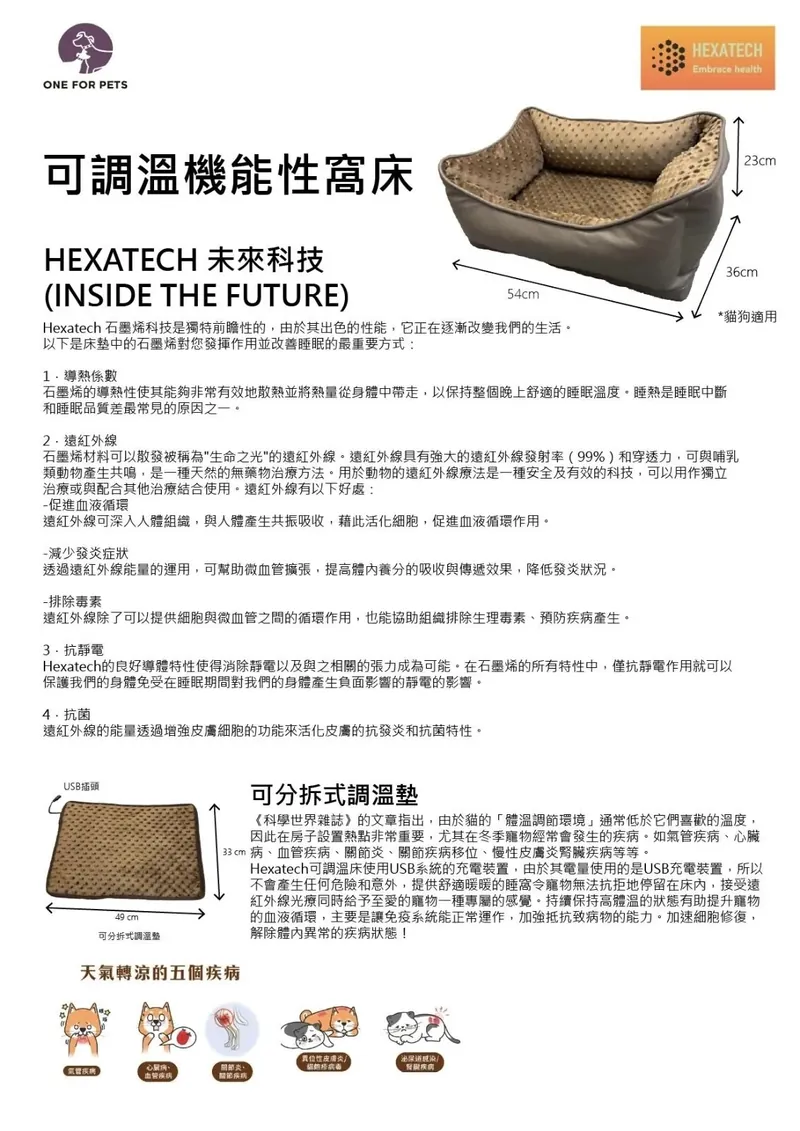 One For Pets Hexatech 可調溫機能性窩床