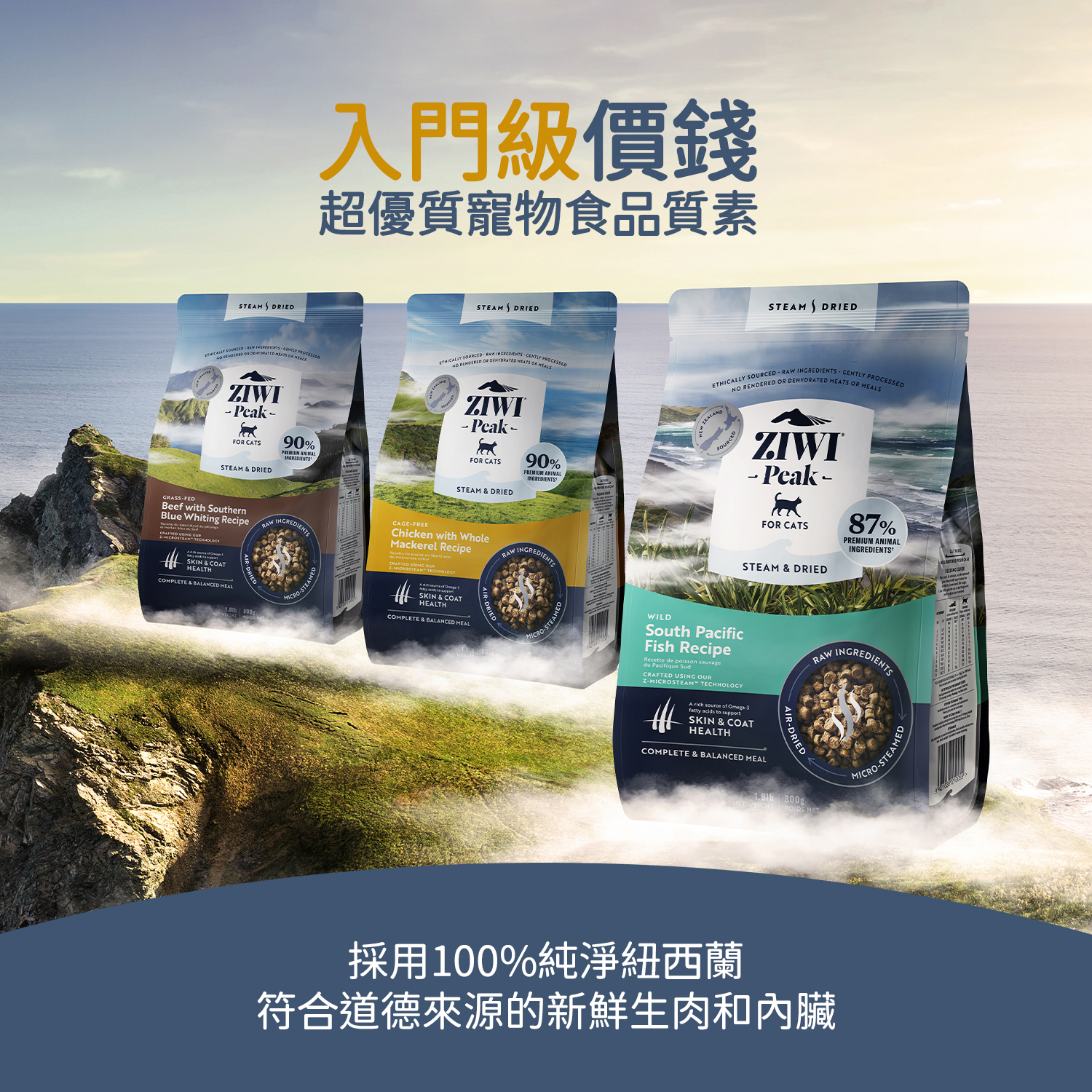 選用紐西蘭自由放養牛肉及野生捕撈南藍鱈魚,內含90%優質生肉和內臟,完整且平衡的食譜。透過創新的雙步驟Z-MicroSteam™ 精緻微蒸技術,進行溫和蒸煮以確保最佳的營養和口感,首先精緻微蒸生肉,以形成輕盈、飽滿的質感,第二步是緩慢溫和雙風乾,以保持輕盈的質感並鎖住營養。豐富奧米加-3脂肪酸幫助皮膚和毛髮健康;葡萄糖胺和軟骨素有助增強貓咪移動能力和促進關節健康;牛磺酸有助維持正常視力、消化、心肌運作、健康的免疫系統,不但可作為主食亦可作伴糧或零食,適合所有年齡的貓咪。