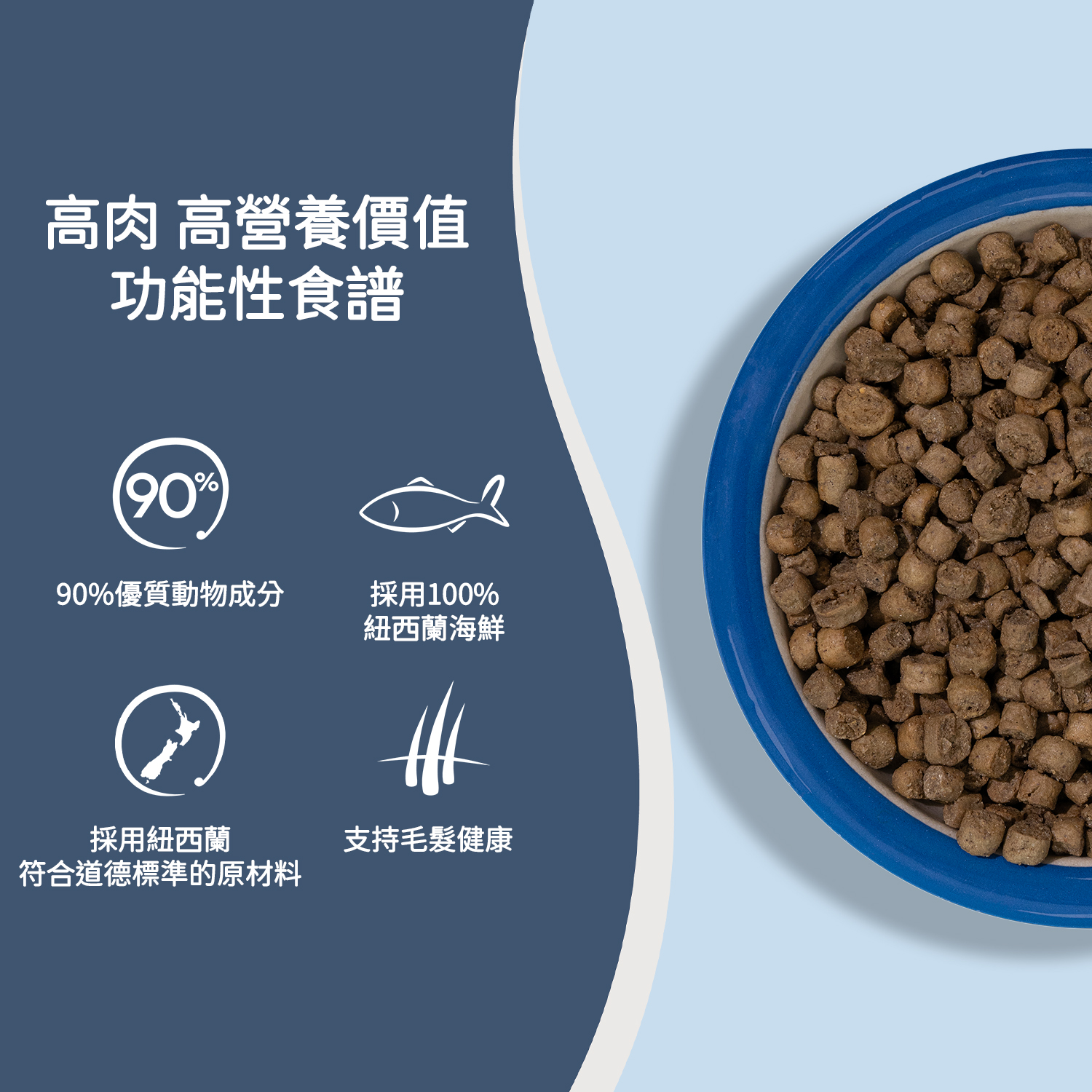 • 90% 優質的動物成分,採用新鮮生肉和內臟及原條海鮮